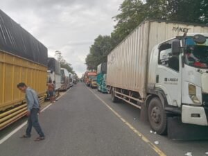 Insiden ini terjadi setelah sebuah kendaraan berat terguling dan melintang di tengah badan jalan, menutup akses dari dua arah tanpa celah. Akibatnya, ribuan kendaraan tidak dapat melintas.