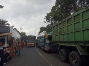 Truk logistik, mobil pribadi, dan bus antarkota terjebak antrean panjang hingga puluhan kilometer, membuat jalur Lintas Timur lumpuh total lebih dari 14 jam.