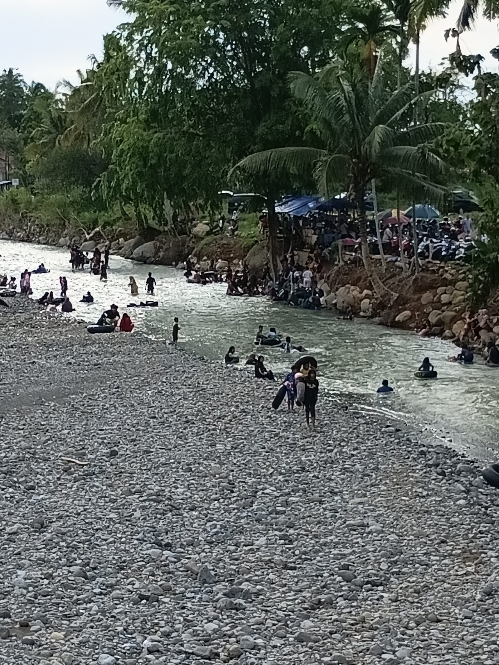 Pantauan di lokasi menunjukkan puluhan pengunjung dari berbagai usia memadati aliran sungai. Anak-anak hingga orang dewasa tampak berenang, bermain air menggunakan ban, serta berkumpul bersama keluarga di sepanjang tepian sungai berbatu. Aktivitas tersebut menjadi simbol nyata kebangkitan sosial masyarakat pascabencana.