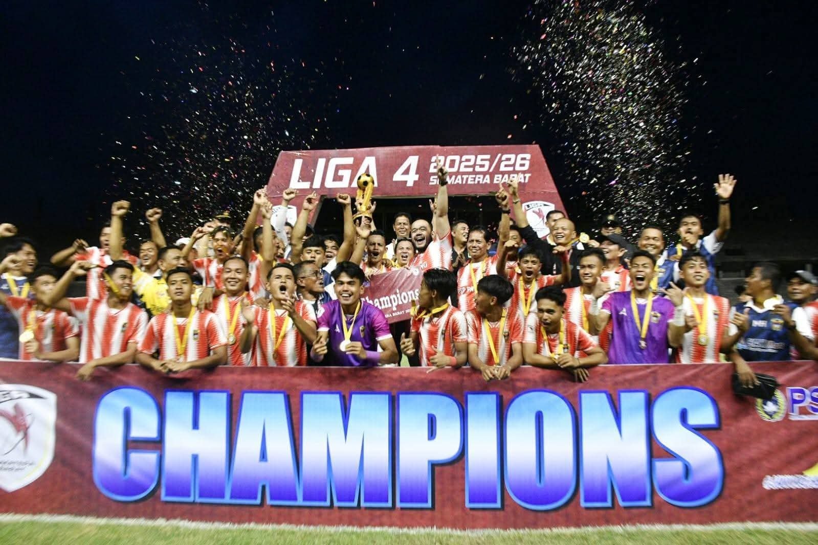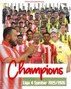 Padang Pariaman — PSP Padang juara Liga 4 Sumbar 2025/2026 setelah mengalahkan PSPP Padang Panjang dengan skor 3-2 dalam laga dramatis hingga babak extra time di Stadion Utama Sumatera Barat, Kamis (2/4/2026).